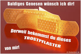 ne die hab ich natürlich nicht aber es geht mir den Medis und kühlen schon recht gut. Micha ist mittlerweile im Bett, bekommt die letzte Nahrung und wenn das alles erledigt ist, tausche ich Sofa gegen Bett. Wird schon werden, hat wohl alles seinen Sinn. Wer weiß was gewesen wäre, wenn ich morgen nach Niedersachsen gefahren wäre - ist halt so. Das mit dem Spucken und Wunden, ja du hast Recht aber es gibt sicherlich gute Medis für ihn, die nun mal eingesetzt werden sollten, damit ihm nicht immer so über ist und er die Nahrung wieder ausspuckt nech? Die Knubbel können, so wie du sagst, Lymphen sein, nur wurde an der Seite alles, wirklich alles, Nervenstränge, Lymphen usw. entfernt. Die Seite ist taub und wird wahrscheinlich auch so bleiben. Wird bestimmt nichts schlimmes sein, will nur Gewissheit haben. Der Masseurin ist es heute auch aufgefallen nd daher frage ich nun einfach besser mal nach. Dir alles Liebe, hoffe es geht dir gut. Christa, hallo, wie geht es dir? Danke für die Grüße und das du dich hier bei mir gemeldet hast. Alles Gute für dich. |