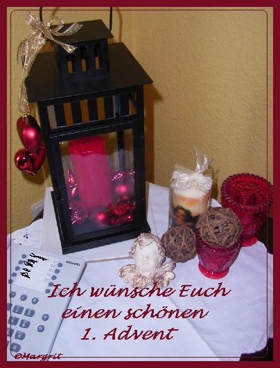 Ich möchte es mir nicht nehmen lassen, Euch allen einen schönen 1. Advent, ach überhaupt eine schöne Adventszeit schlechthin zu wünschen. @Leni Ich freu mich sehr, dass Du nun wieder hier bei uns bist. Hast uns wirklich sehr gefehlt. Dass die Mädels Deinen Schrank so vollgestopft haben, tut mir echt leid!!! Das nächste Mal müssen wir mehr Sorgfalt walten lassen!!! @Renate Ich habe mich auch über Barbaras Eintrag gewundert. Habe gedacht, ich hätte was überlesen. Aber irgendwie hat ja Frau O. wohl nicht richtig gelesen. Jaja, die Gute, nun trägt sie schon eine Brille, aber???
